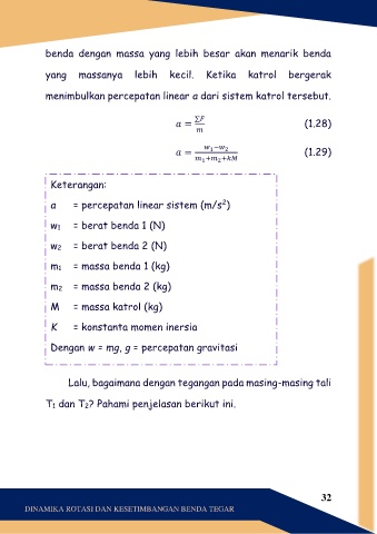 yang  massanya  lebih  kecil.  Ketika  katrol  bergerak