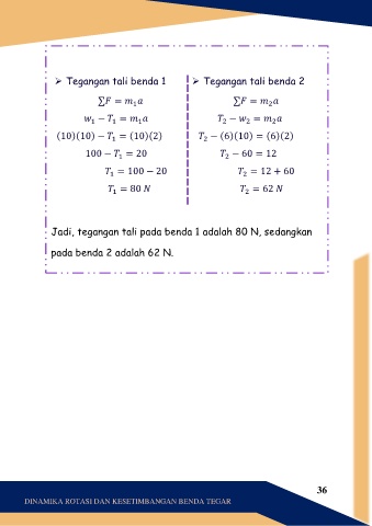 Jadi, tegangan tali pada benda 1 adalah 80 N, sedangkan