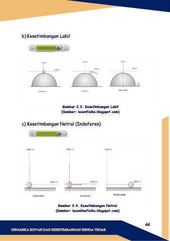 b) Kesetimbangan Labil Gambar 2.3. Kesetimbangan Labil (Sumber: lesonfisika.blogspot.com) c) Kesetimbangan Netral (Indeferen) Gambar 2.4. Kesetimbangan Netral (Sumber: lesonlinefisika.blogspot.com) 44 DINAMIKA ROTASI DAN KESETIMBANGAN BENDA TEGAR