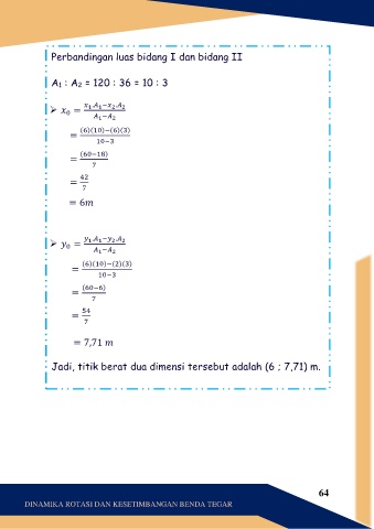 Jadi, titik berat dua dimensi tersebut adalah (6 ; 7,71) m.