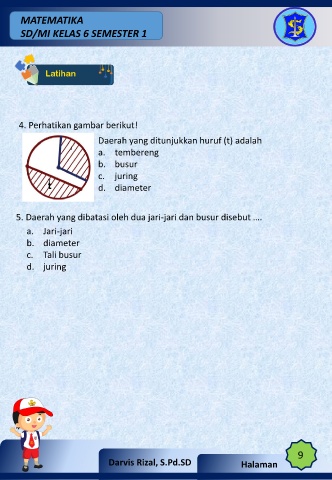 5. Daerah yang dibatasi oleh dua jari-jari dan busur disebut ….
