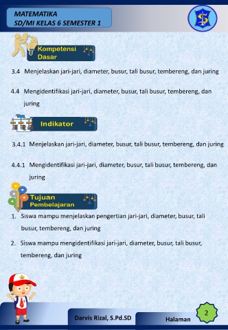 2. Siswa mampu mengidentifikasi jari-jari, diameter, busur, tali busur,