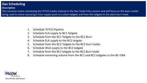 This scenario covers scheduling the TETCO trades entered in the Gas Trade Entry session and will focus on the basic model