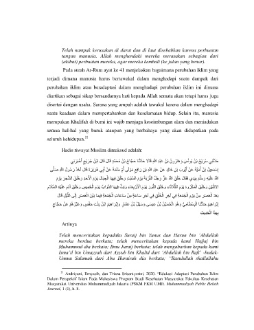 Pada surah Ar-Rum ayat ke 41 menjelaskan bagaimana perubahan iklim yang