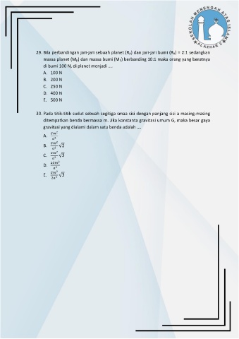 29. Bila perbandingan jari-jari sebuah planet (Rp) dan jari-jari bumi (Rb) = 2:1 sedangkan