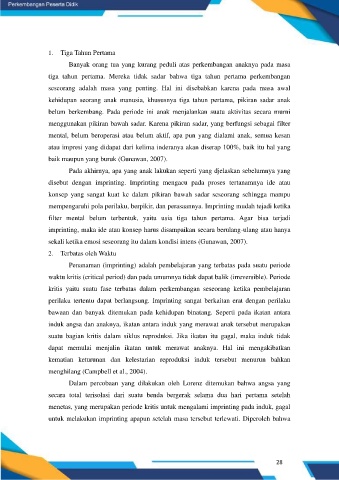 mempengaruhi pola perilaku, berpikir, dan perasaannya. Imprinting mudah tejadi ketika