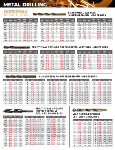 SIZE SALE REG. CODE SIZE SALE REG. CODE SIZE SALE REG. CODE LETTERED DRILL BITS