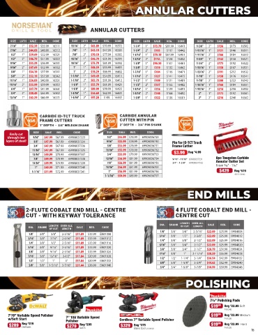 15/16" $49.99 $70.99 69908037339 7/8" $56.99 $81.99 69908036735 3/4” - 1-3/8” 69908037332 Annular Cutter Set