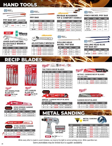 PRY BAR TIP & COMFORT HANDLE SIZE SALE REG. CODE