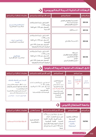 اسم البرنامج الحد الأدنى للتقدم للبرنامج معلومات إضافية عن البرنامج رمز البرنامج