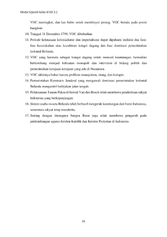 13. VOC akhirnya bubar karena problem manajemen, utang, dan korupsi.