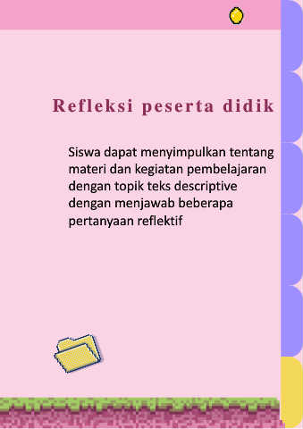 Refleksi peserta didik Siswa dapat menyimpulkan tentang materi dan kegiatan pembelajaran dengan topik teks descriptive dengan menjawab beberapa pertanyaan reflektif