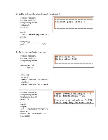 8. Deklarasi Fungsi terletak di bawah fungsi main ()