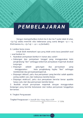 konjungsi yang bernilai kebenaran dari kedua pernyataan tunggalnya