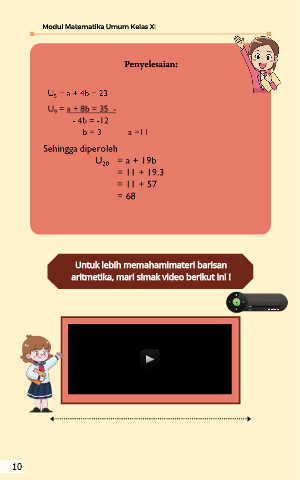 Modul Matematika Umum Kelas XI Penyelesaian: Untuk lebih memahamimateri barisan aritmetika, mari simak video berikut ini ! video barisan eno