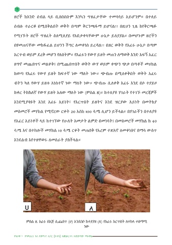 ምስል 8. አፈሩ በእጅ ሲጨበጥ (ሀ) አንደበሶ ከተያያዘ (ለ) የአፈሩ እርጥበት ለተከላ ተስማሚ
