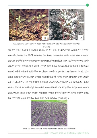 ምስል 15 ከበቀሉ 3 ቀናት የሆናቸው የኬነዋ ችግኞች በትከክለኛው የዘር መጠን(ሀ) ከሚገባውየዘር መጠን