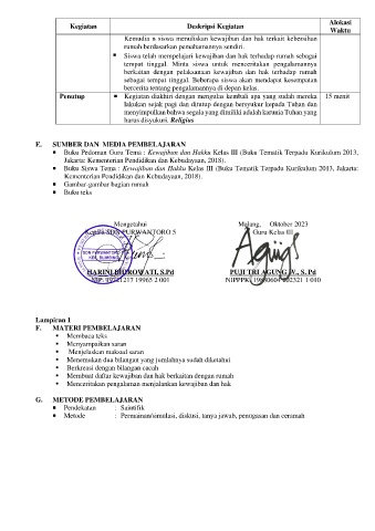 Penutup Kegiatan diakhiri dengan mengulas kembali apa yang sudah mereka 15 menit