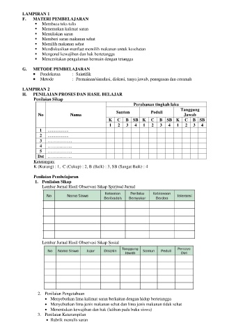 Lembar Jurnal Hasil Observasi Sikap Spiritual Jurnal