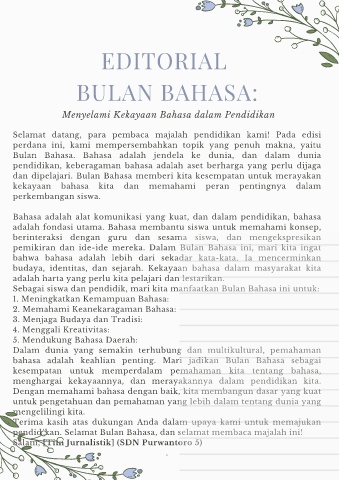 pendidikan. Selamat Bulan Bahasa, dan selamat membaca majalah ini!