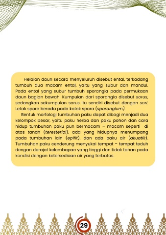 Pada ental yang subur tumbuh sporangia pada permukaan