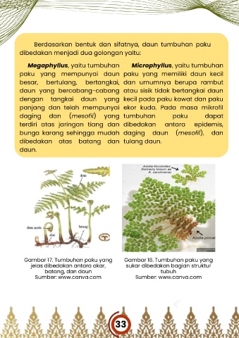 Berdasarkan bentuk dan sifatnya, daun tumbuhan paku