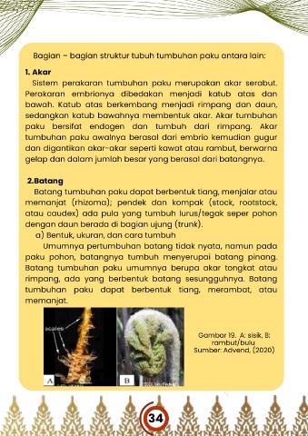 Bagian – bagian struktur tubuh tumbuhan paku antara lain: