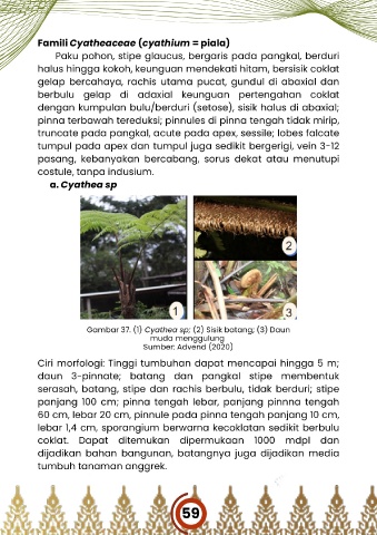 Gambar 37. (1) Cyathea sp; (2) Sisik batang; (3) Daun
