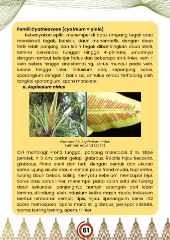 bentuk lembaran sempit, tipis, hijau. Sporangium berisi >32