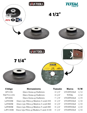 DP115G Disco Goma p/Galletero 4 1/2" UYUSTOOLS 1/12