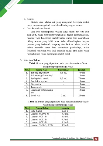 Tabel 10. Alat yang digunakan pada percobaan faktor-faktor