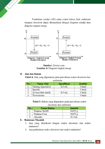 Perubahan entalpi (ΔH) suatu reaksi kimia, baik endoterm