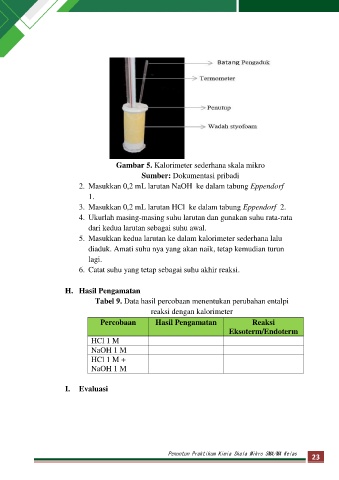 5. Masukkan kedua larutan ke dalam kalorimeter sederhana lalu