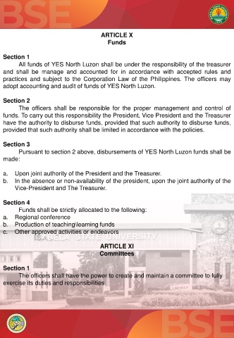 All funds of YES North Luzon shall be under the responsibility of the treasurer
