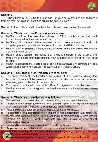 The officers of Y.E.S. North Luzon shall be elected by the different nominees