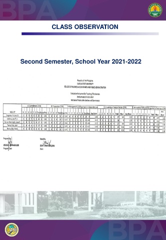 CLASS OBSERVATION Second Semester, School Year 2021-2022