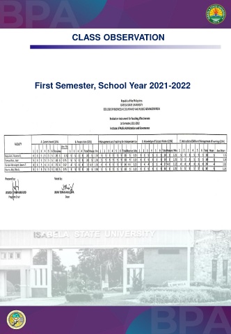CLASS OBSERVATION First Semester, School Year 2021-2022