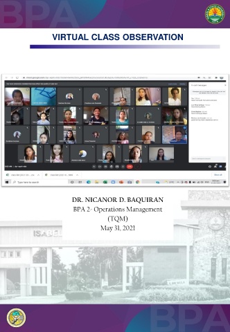 VIRTUAL CLASS OBSERVATION DR. NICANOR D. BAQUIRAN BPA 2- Operations Management (TQM) May 31, 2021