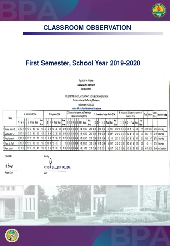 CLASSROOM OBSERVATION First Semester, School Year 2019-2020