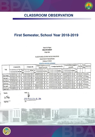 CLASSROOM OBSERVATION First Semester, School Year 2018-2019
