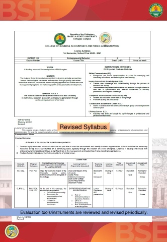 Revised Syllabus Evaluation tools/instruments are reviewed and revised periodically.