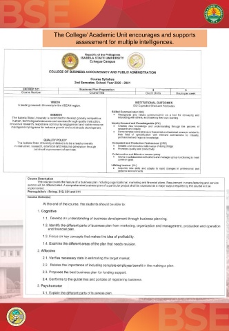 The College/ Academic Unit encourages and supports assessment for multiple intelligences.