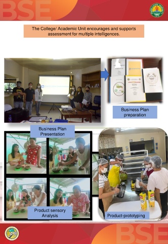 The College/ Academic Unit encourages and supports assessment for multiple intelligences. Business Plan preparation Business Plan Presentation Product sensory Analysis Product-prototyping