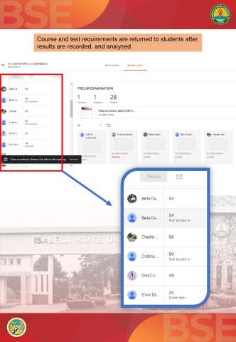 Course and test requirements are returned to students after results are recorded, and analyzed.
