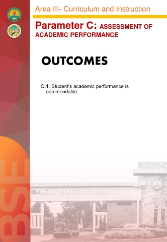 Area III- Curriculum and Instruction Parameter C: ASSESSMENT OF ACADEMIC PERFORMANCE OUTCOMES O.1. Student’s academic performance is commendable.