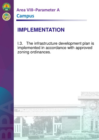 Area VIII–Parameter A Campus IMPLEMENTATION I.3. The infrastructure development plan is implemented in accordance with approved zoning ordinances.