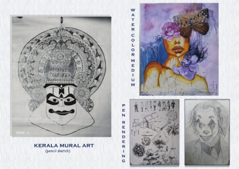 w a t e r c o l o r m e d i u m p e n r e n d e kerala mural art r (pencil sketch) i n g