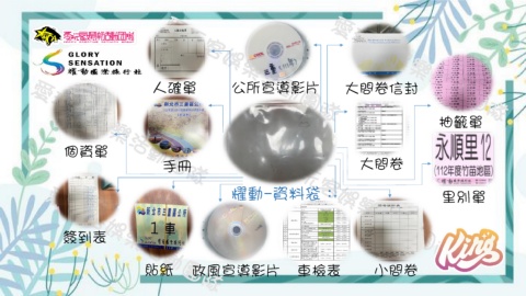 人確單 公所宣導影片 大問卷信封 抽籤單 個資單 手冊 大問卷 耀動-資料袋: 里別單 簽到表 貼紙 政風宣導影片 車檢表 小問卷