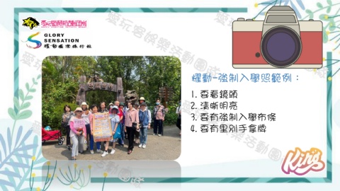 耀動-強制入學照範例: 1.要看鏡頭 2.清晰明亮 3.要有強制入學布條 4.要有里別手拿牌