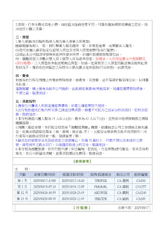 第 1 天 2025/10/17-13:00 2025/10/17-16:20 TPE/PEK CA 國航 CA186